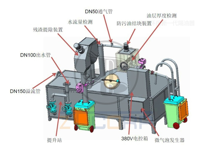 為了防止油結(jié)塊,配備有自動加熱裝置;采用微氣泡裝置,加速油水分離速度。該油水分離器最大特點(diǎn)就是全密閉、自動化、效率高,與我公司壓榨分離機(jī)配套使用,廣泛應(yīng)用于餐廚垃圾的集中處理和綜合應(yīng)用,適用于商業(yè)大廈、酒店、賓館、飯店、食堂、食品加工場的廚房油污及其他含油廢水的處理,同時(shí)也廣泛使用于漂浮性液態(tài)油污(包括動植物油、機(jī)油、柴油、潤滑油及其它比重較小液體) 的油水分離,能夠消除油脂的管道的堵塞及對排放水體的污染,大大降低污水處理的難度和造價(jià)。