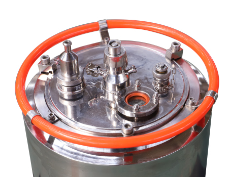 先將一定量的物料注入卡氏罐后,帶罐加熱殺菌,再將卡式罐內(nèi)物料冷卻至所需溫度,然后通過罐內(nèi)充氧管,給冷物料充氧,當氧足夠時,從接種口接種,定期充氧和晃動培養(yǎng)出純酵母后,便可用無菌空氣通過罐頂?shù)娜娱y壓入種子罐繼續(xù)擴大培養(yǎng)。