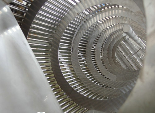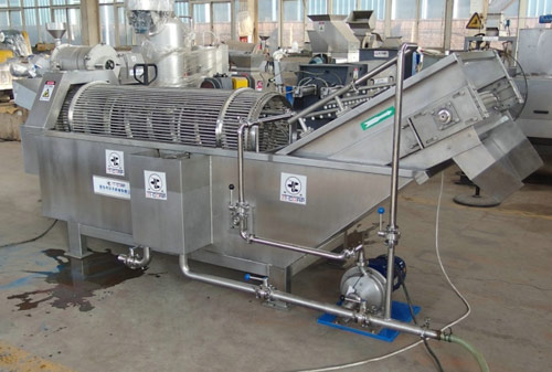 該清洗機(jī)采用逆流洗滌原理壓噴淋管,使物料在整個(gè)翻轉(zhuǎn)移動(dòng)的過(guò)程中又受到高壓水的噴淋沖洗,清洗效果好,可有效除泥、除沙。清洗后的物料由清洗槽內(nèi)的提升機(jī)提升到下道工序。,物料從進(jìn)口流入清洗機(jī)滾筒內(nèi),隨著滾筒內(nèi)壁的螺旋轉(zhuǎn)動(dòng)至出口,而清洗槽內(nèi)的水,在滾筒內(nèi)螺旋的反作用下流向清洗機(jī)進(jìn)口,與物料逆向運(yùn)動(dòng),同時(shí)在滾筒內(nèi)安裝有高