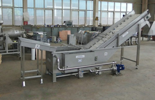該設(shè)備為果蔬加工生產(chǎn)線關(guān)鍵設(shè)備之一,用于果蔬的清洗提升作業(yè)。該清洗機是以風(fēng)機風(fēng)力使水產(chǎn)生強烈攪拌運動, 使物料在水中翻滾, 特殊物料增加翻爪結(jié)構(gòu),提高清洗效果,同時安置在進(jìn)料口的高壓水管噴頭將物料用水力推向提升機方向,經(jīng)清洗的果蔬由提升機輸入下道工序。該設(shè)備為果蔬汁生產(chǎn)線中必備機械,廣泛適用于蔬、果的清洗,使用方便,節(jié)水效果顯著。