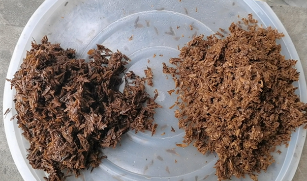 ▌黨參提取廢渣擠壓脫水前后對(duì)比 / Compared before and after extrusion dehydration